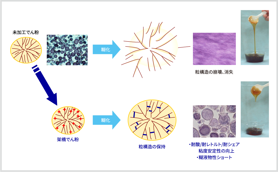 耐熱、耐レトルト、耐酸、耐シェア性、粘度安定性の向上に寄与します。