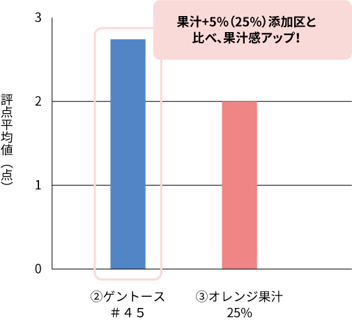 原材料 ①コントロール ②ゲントース#45 ③オレンジ果汁25%