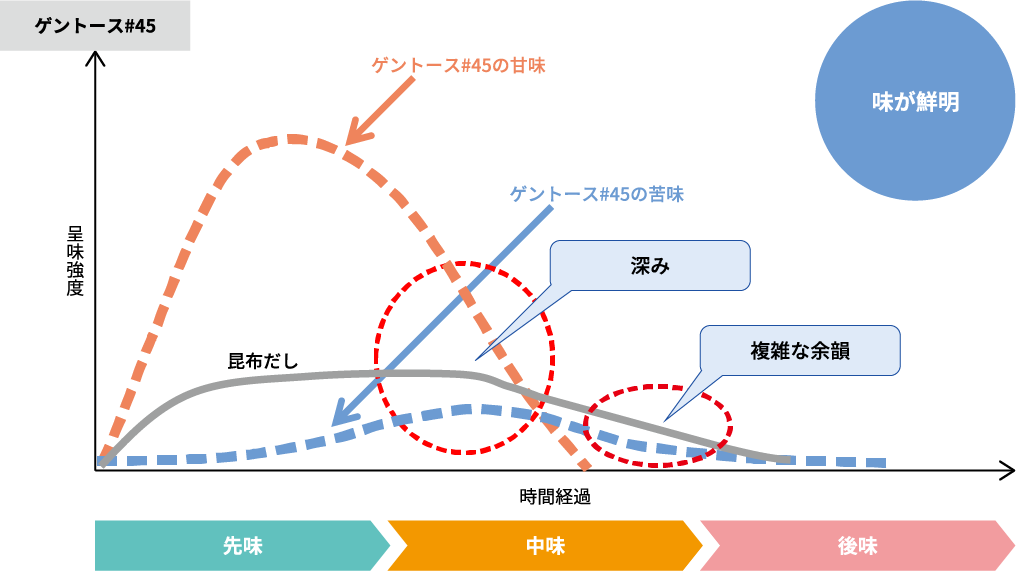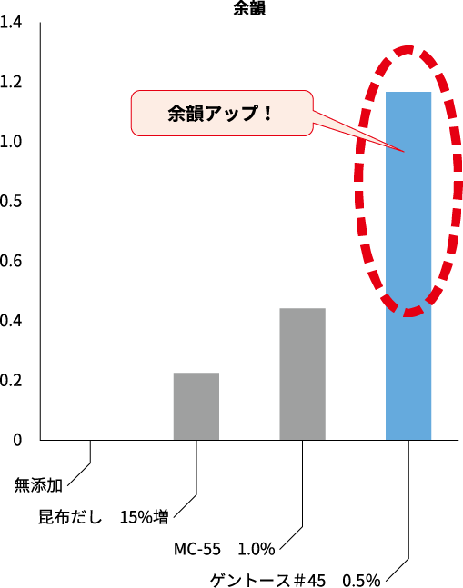 | ④ゲントース#45 0.5% | 昆布らしい余韻が出る。全体的に味が濃くなる。トップのインパクトあり。 |