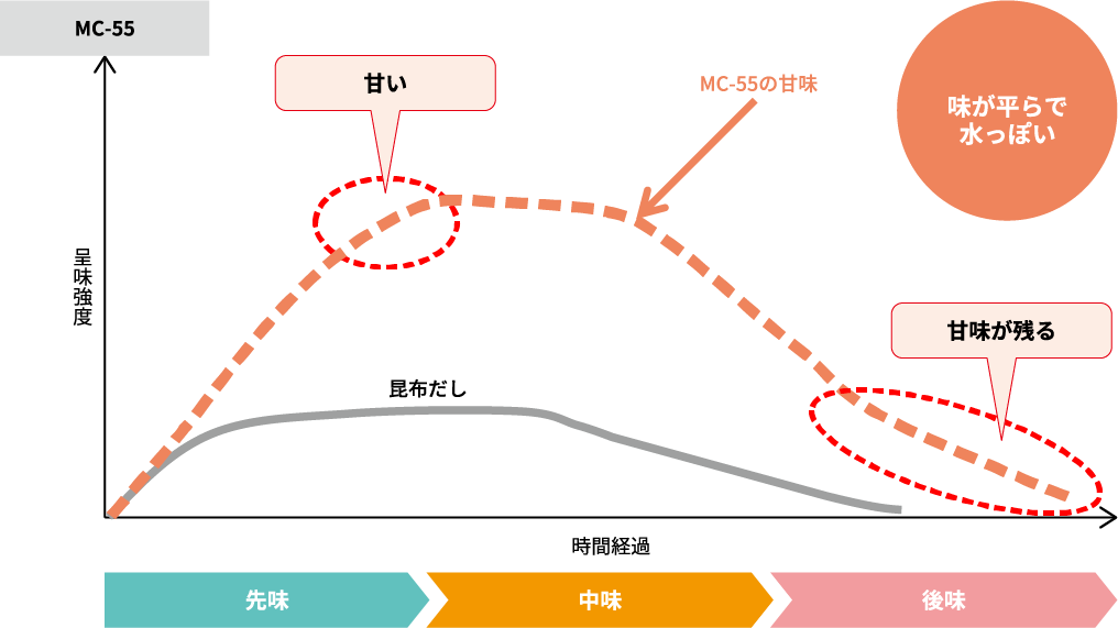 | ③MC-55(※) 1.0% | コクがでる。まとわりつくような甘さがある。 |