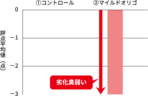 | ②マイルドオリゴ | 劣化臭が低減されている 特に薬品臭の低減効果が高い 柑橘由来の酸味が立つ |