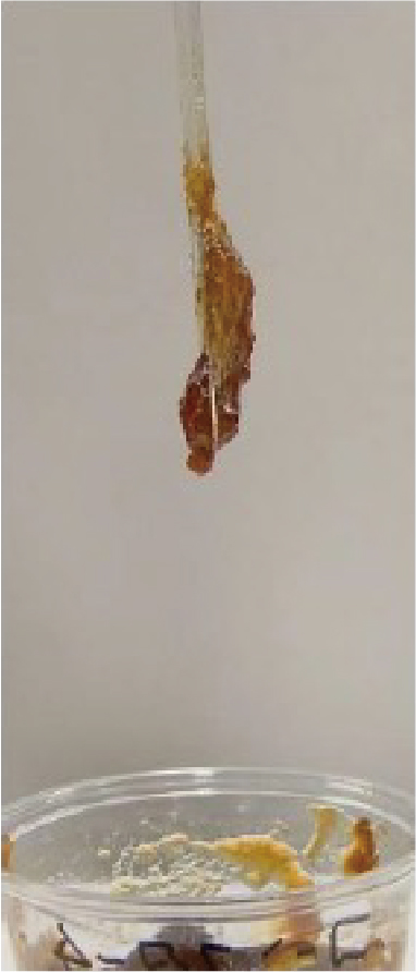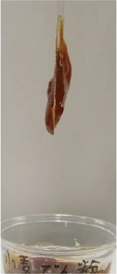 | 常温1日後の状態 | 105℃殺菌後 | 冷凍(−30℃)1日後 | タレの顕微鏡写真 (常温1日後) |